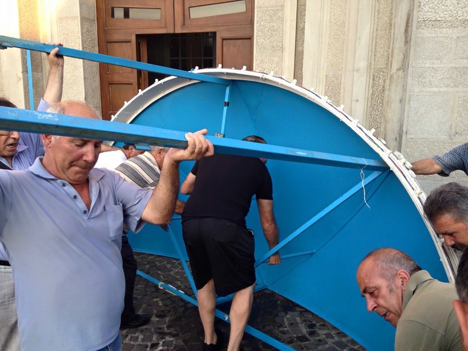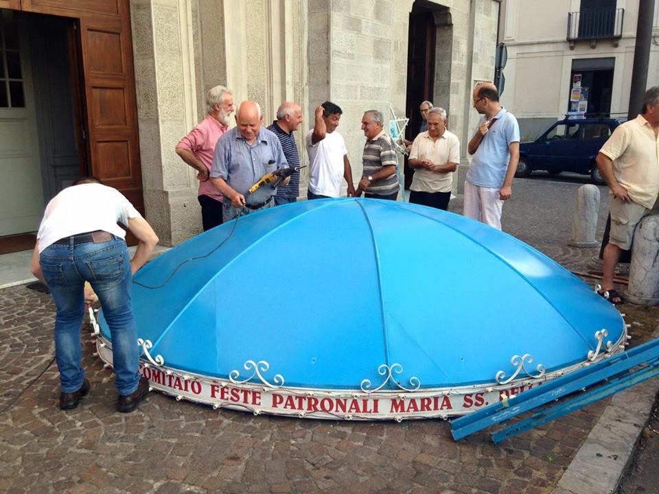 Preparativi Festa Patronale 2015 Con l’installazione del BARACCHINO del Comitato Feste, davanti al sagrato della Chiesa, iniziano i preparativi per i Solenni Festeggiamenti della Madonna della Montagna